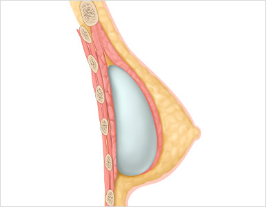 보형물 상부 2/3는 대흉근 아래, 하부 1/3은 유선조직에