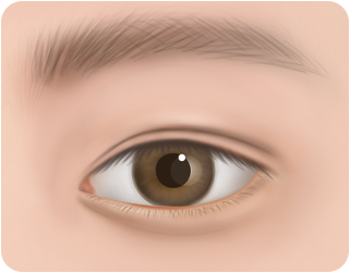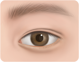 쌍꺼풀라인의 시작점이 눈 앞머리에 닿아 있고