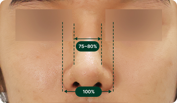 콧대와 코끝에 볼륨감을 주어 빈약한 느낌이 들지 않도록 합니다.